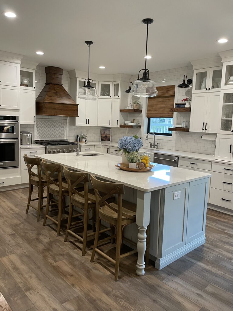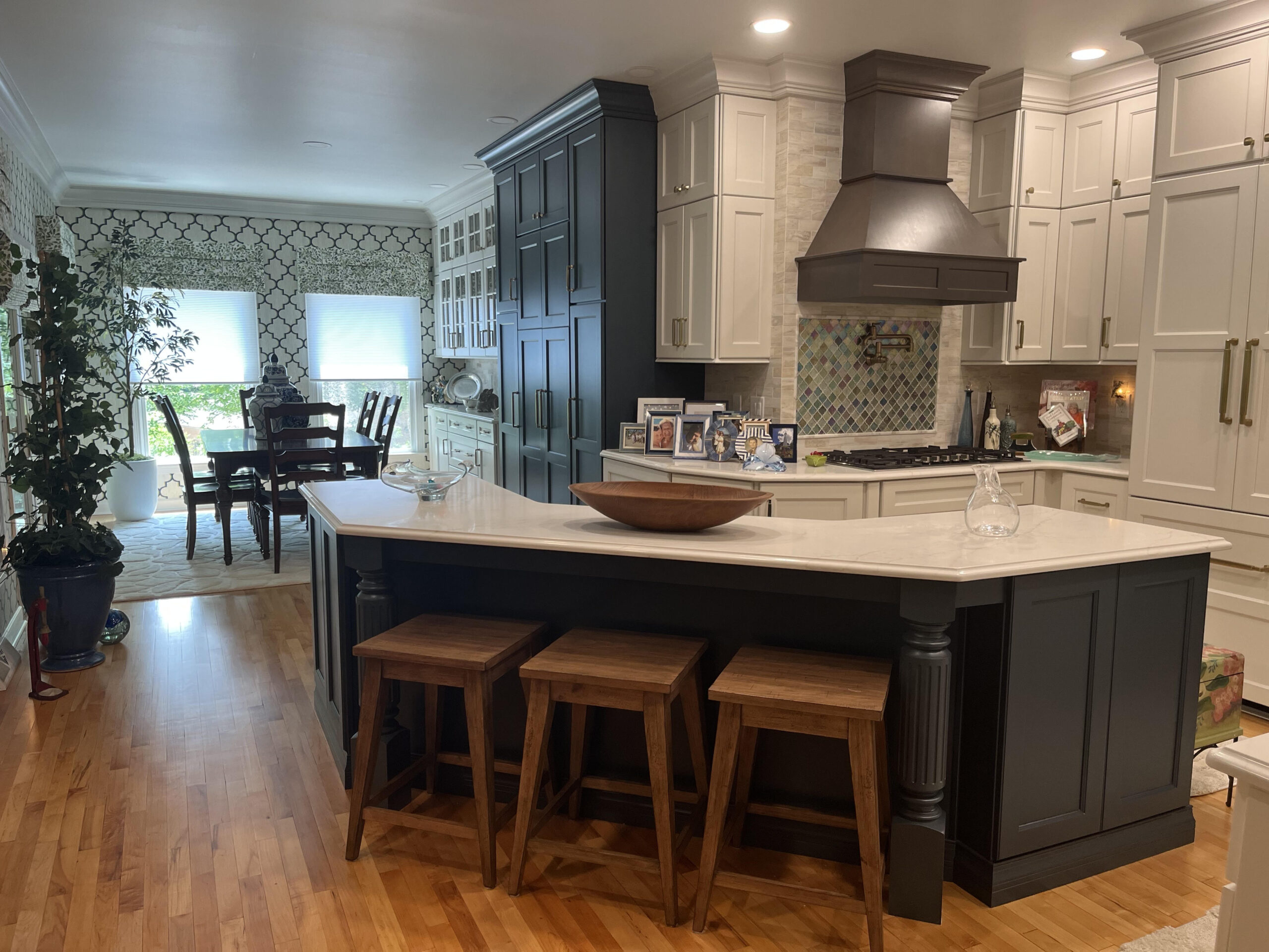 The extensive renovation required more than a year to complete. The renovation included the kitchen, a first-floor addition, primary bedroom and bath, new back deck, and new landscaping. Several professionals contributed to this renovation: