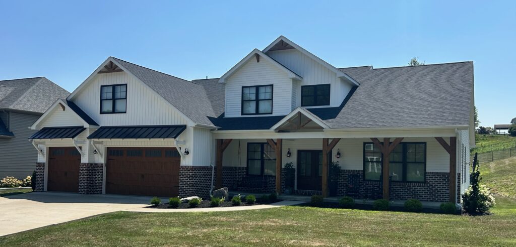 This Richwell Custom Home was completed in 2021. The cabinets were made by Alam’s Home and Hardware of Aliquippa. The quartz countertops are by Youngstown Granite and Quartz from Beaver Falls. The fireplace mantel is reclaimed from an Amish barn in Lisbon, OH. Dan, Richwell’s carpenter, handmade the great room ceiling beams, the office built-ins, and the kitchen vent hood.