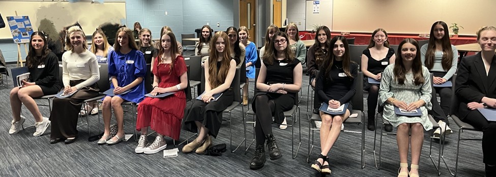 On April 10th, Girls’ Recognition Night honored twenty-eight young ladies from twelve school districts at our event. In attendance were the girls’ families and teachers. Our Community College spokesperson was Ms. Farrow, MBA, who delivered an insightful talk on Cybersecurity. She also informed the girls and their parents about the opportunity to earn college credits while attending high school. Our two college panelists, Cassidy McCracken, an Engineering Major at CCBC, and Stephanie Milovich, an Information Technology Major at Penn State Beaver, provided the girls with valuable information on college life and what to expect in classes.